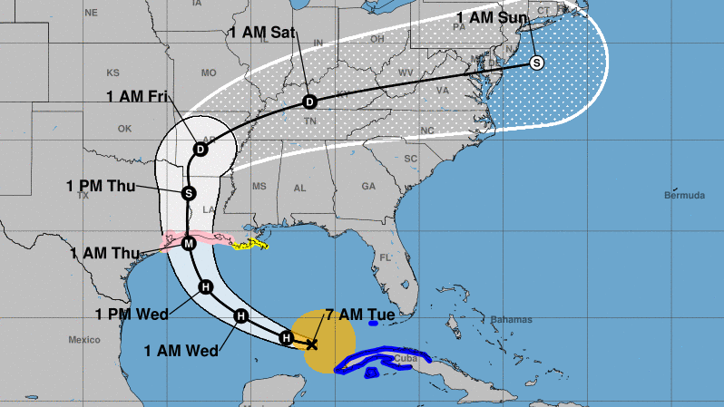“There is a risk of life-threatening storm surge from San Luis Pass, Texas, to Ocean Springs, Mississippi, within the next 48 hours,” the NHC says, describing a a storm surge watch that is now in effect.